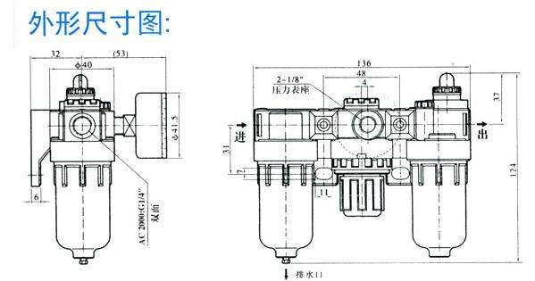 氣源三聯(lián)體是布袋除塵器配件中的一種,此配件一般接在除塵器氣包的前面的管道上,它的組成比較簡(jiǎn)單,但發(fā)揮的作用確不可忽視。氣源三聯(lián)體又叫油水分離器,一般由分水濾氣器、減壓閥、油霧器3部分組成,分水濾氣器可以通過(guò)濾芯將空氣中水分過(guò)濾;減壓閥通過(guò)彈性元件來(lái)調(diào)整出口壓力;油霧器將油變成油霧添加在壓縮空氣中,作為氣動(dòng)元件的潤(rùn)滑。.如果除塵器的氣包前面沒(méi)有此配件的話,氣包在使用中進(jìn)入水分和油分就會(huì)影響除塵器電磁脈沖閥的使用效果,或者直接影響電磁閥的正常工作。如果氣包前面沒(méi)有油水分離器的話,除塵器的氣包上就得安裝排污閥,定期進(jìn)行排污,以免氣包內(nèi)的臟東西影響除塵器設(shè)備正常工作。