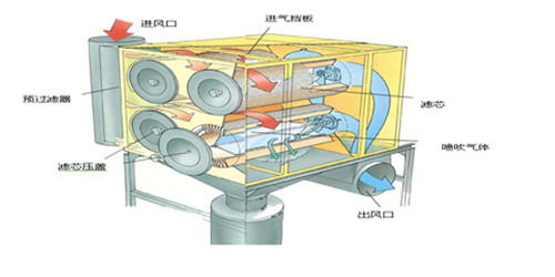 脈沖濾筒除塵器的工作原理: