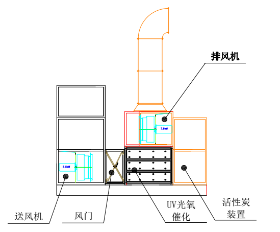 最后,通過(guò)三重處理的氣體經(jīng)風(fēng)機(jī)抽排到大氣中。
