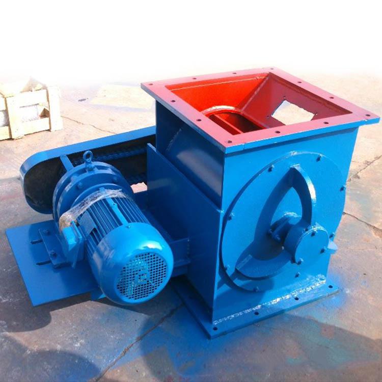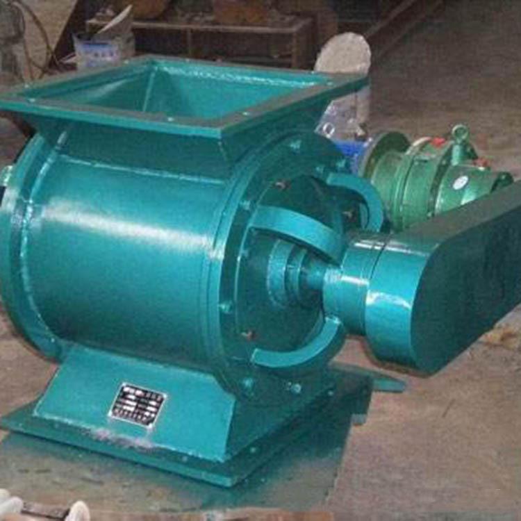 鏈條傳動(YJD-HG)卸料器由旋轉(zhuǎn)給料器是由帶有數(shù)片葉片的轉(zhuǎn)子葉輪、殼體、密封件及減速器、電動機(jī)等組成;當(dāng)上部料倉的物料靠自重落下充填在葉片之間的空隙中, 隨葉片的旋轉(zhuǎn)而在下部卸出, 因此, 星型卸料裝置可以定量而連續(xù)地卸料;旋轉(zhuǎn)給料器常用在氣力輸出系統(tǒng)中,對于壓力輸出系統(tǒng)或負(fù)壓輸出系統(tǒng),可以均勻, 連續(xù)地向輸料管供料, 以保證氣力輸出管內(nèi)的氣、固體比較穩(wěn)定, 從而使氣力輸送能正常工作, 同時,又能將卸料閥的上、 下部氣壓隔斷而起到鎖氣作用。 因此,卸料裝置是氣力輸送系統(tǒng)中常用的重要部件。